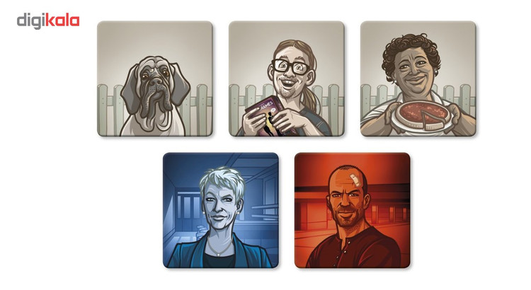 - 14 عدد کارت مامور در دو رنگ - 1 عدد کارت مامور دوجانبه (جاسوس) - 4 عدد کارت بیگناه - 1 عدد کارت قاتل - 60 عدد کارت کلید - 1 عدد دستورالعمل بازی - 1 عدد پایه کارت - 140 عدد کارت با 280 عکس