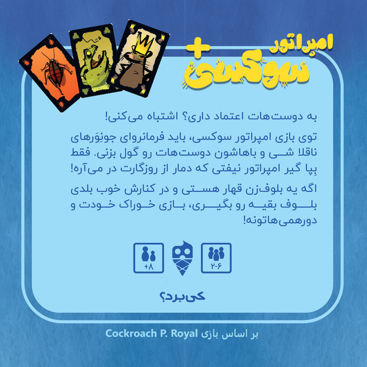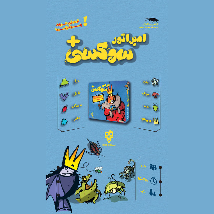 برگردانی از بازی خارجی Cockroach Royal /تعداد بازیکنان: 2 تا 6 نفر /سن بازیکنان: بالای 8 سال /زمان بازی: حدود 30 دقیقه /محصولی از گروه تاس بستنی dice cream